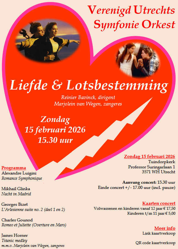 Het Verenigd Utrechts Symfonieorkest (VUSO) speelt op 15 februari een programma dat geheel in het teken staat van de liefde in uitzonderlijke situaties. Op het programma staan de volgende muziekstukken: