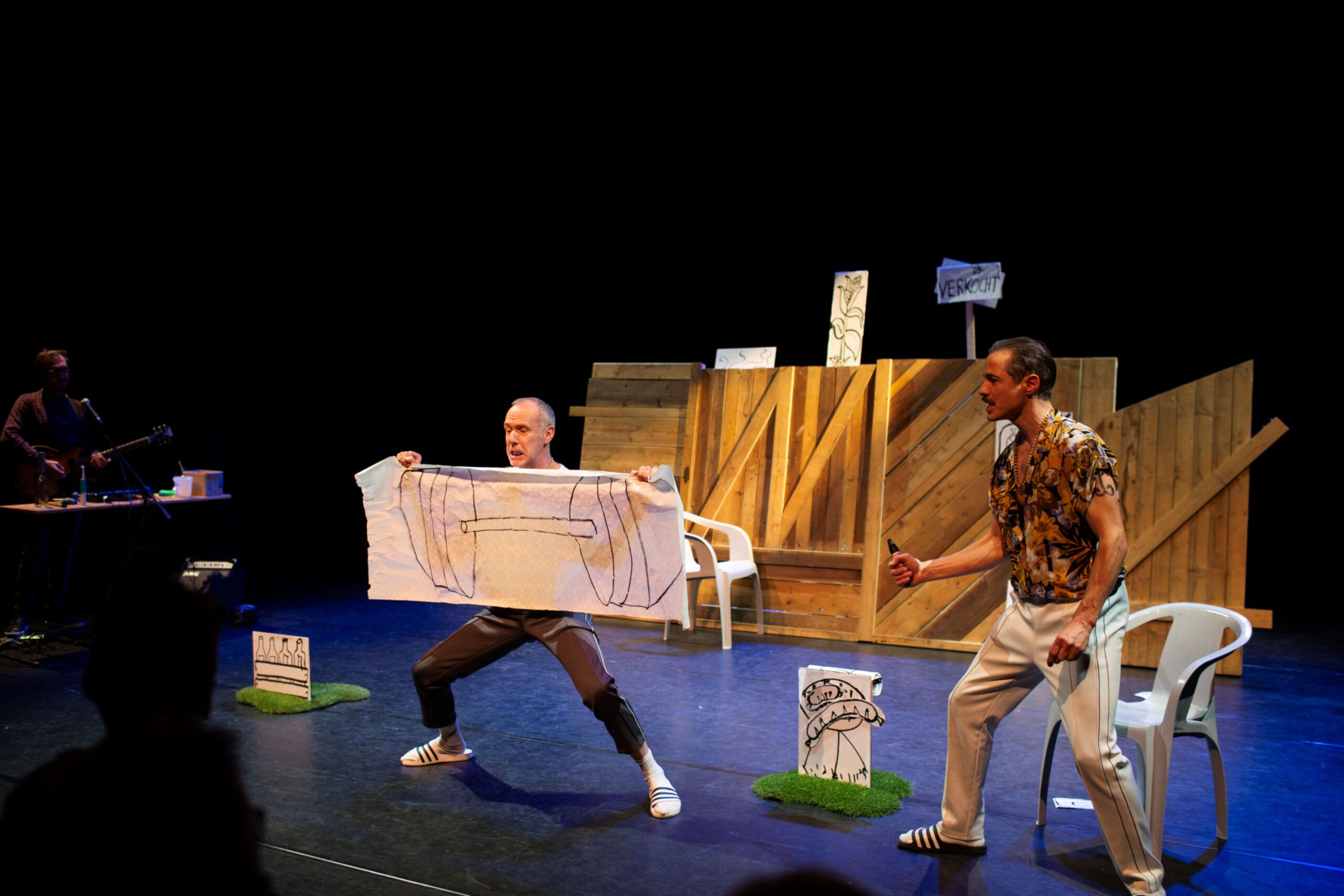 Verwacht een speelse mix van theater en tekenfilm, vol verrassingen. Een vrolijke schop onder de kont van de baasjes van deze wereld.