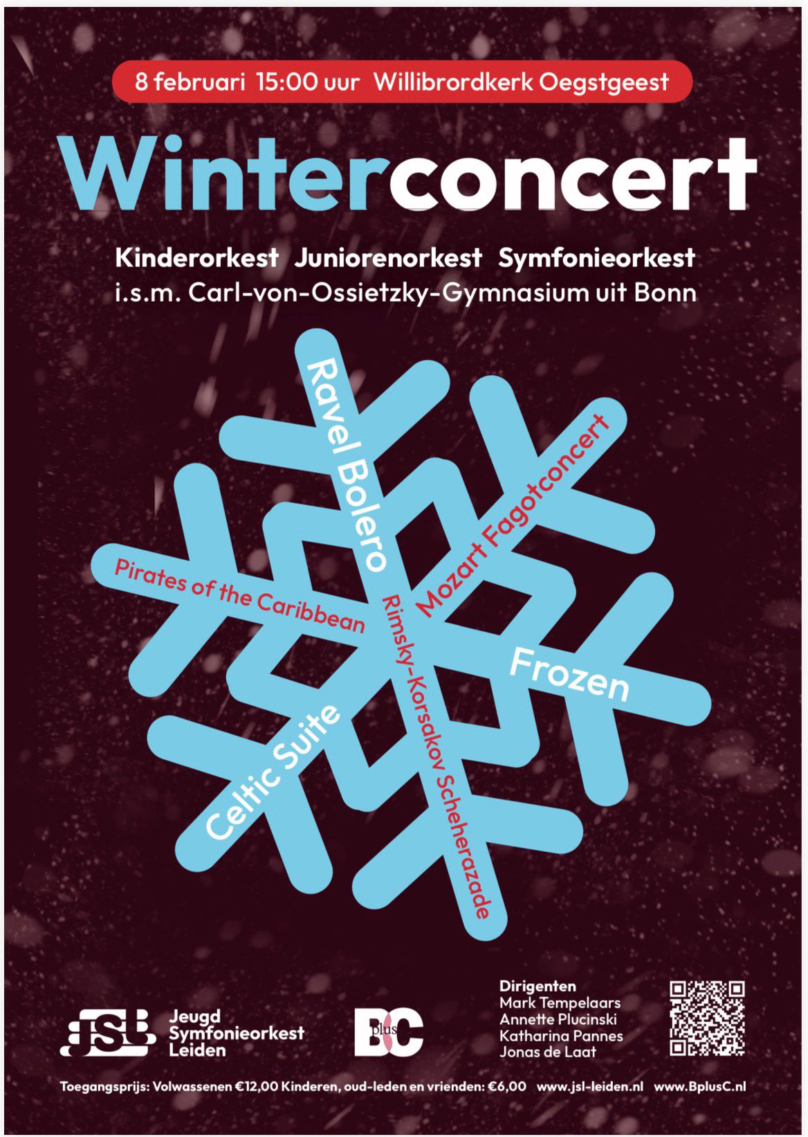 Op zondag 8 februari verzorgt het Jeugd Symfonieorkest Leiden haar jaarlijkse winterconcert in de Willibrordkerk in Oegstgeest. Ditmaal in samenwerking met het orkest van het Carl von Ossietzky Gymnasium uit Bonn.