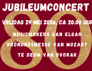 Toonkunstkoor Wageningen geeft op vrijdag 29 mei 2026 een Jubileumconcert in het kader van haar 80e verjaardag. Uitgevoerd worden: Musicmakers van Elgar Krönungsmesse van Mozart Te Deum van Dvorak Koor, orkest en solisten staan onder de bezielende leiding van dirigent Hans de Wilde.